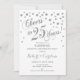 Convite de Surpresa de 25º Aniversário de Casamento. Design elegante em branco e prata brilhante falso com confete e fonte de caligrafia. Saúde por 25 Anos! Perfeito para uma festa elegante. Mensagem para mim se precisar de um ano personalizado.