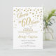 Design elegante em branco e dourado falso com confetes e fonte manuscrita. Saúde aos 60 Anos! Perfeito para uma festa sofisticada. Mensagem para mim se precisar de um ano personalizado.