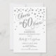Design elegante em branco e prata falso com confetes e fonte manuscrita. Saúde por 60 Anos! Perfeito para uma festa sofisticada. Mensagem para mim se precisar de um ano personalizado.