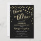 Design elegante em preto e dourado falso com confetes e fonte manuscrita. Parabéns por 60 anos! Perfeito para uma festa sofisticada. Mensagem-me se precisar de um ano personalizado.
