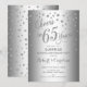 Design elegante em prata brilhante falsa com confete e fonte script cinza. Saúde por 65 Anos! Perfeito para uma festa sofisticada. Mensagem para mim se precisar de um ano personalizado.
