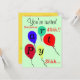 Surpreenda aniversário de 40 anos ou marco qualquer ano. Balões de aniversário voadores coloridos em amarelo azul-alaranjado vermelho. Bonito fundo verde de menta clara. Cartas de festas são escritas em balões. Convites perfeitos para diversão festa de aniversário para 40º ou QUALQUER marco de aniversário para homens ou mulheres! A parte traseira tem a data da parte e os detalhes de local em um plano de fundo amarelo. Design de Arte Original por TamiraZDesign.