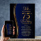 Convites Surpresa Dourada Azul Preta 75.º Aniversário