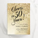Surpresa elegante 50º convite de aniversário. Design elegante em ouro brilhante e preto. Possui fonte e confete de script de tipografia. Perfeito para uma comemoração de um dia de mulher na moda. Personalize com seus próprios detalhes. Envie-me uma mensagem se precisar de idade personalizada. Impressos convites Zazzle ou modelo de impressão digital instantânea para download.