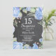 Convite de Surpresa Floral Azul Botânica de 15 anos. Convite de aniversário floral para menina. Rosas florais. Flores de Rosa e Peônia Elegantes. Aniversário infantil. Fundo de quadro-negro. Preto e Branco. 13º 15º 16º 18º 20º 21º 30º 40º 50º 60º 70º 80º 90º 100º, Qualquer idade. Para personalização adicional, clique no botão "Personalizar" e use nossa ferramenta de design para modificar este modelo.