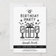 Celebre um dia especial com este design minimalista chic! Apresentando ícones simples preto-e-branco de um presente, óculos de champanhe e estrelas, este convite define um tom de na moda para uma festa de aniversário. Adicione seu nome e detalhes do evento para criar uma manutenção elegante. É uma maneira moderna de convidar convidados para um dia de diversão e celebração!