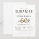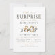 O convite para o aniversário de surpresa moderno apresenta na moda e tipografia com detalhes da sua festa em ouro sofisticado, preto e branco, simples e elegante, Excelente para a 60ª festa de aniversário ou qualquer outra idade,