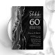 Convite de comemoração de aniversário de 60 anos em preto e prata com ágata. Design moderno e elegante com fundo de geodo de mármore de ágata aquarela, brilho falso prateado e tipografia com fonte de caligrafia. Cartão de convite sofisticado perfeito para uma festa de aniversário de casamento elegante. Convites Zazzle impressos ou modelo digital para impressão instantânea.