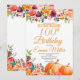 Surpresa Pumpkins Cai 100º Convite de Aniversário. Este design apresenta uma bonito cor d'água floral de bolo pintada em um fundo de madeira rústica acentuado com luzes de cordas. Clique no botão personalizar para obter mais flexibilidade na modificação do texto ou na movimentação dos gráficos. Entre em contato conosco se você precisar deste design aplicado a um produto específico para criar seu próprio item de correspondência exclusivo.