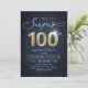 Shhh moderno, é uma surpresa que o 100º convite de aniversário apresenta o roteiro de na moda e o falso número 100 de brilho dourado e os detalhes da sua festa sobre a cor azul do marinho, simples e elegante convite de aniversário para homens e mulheres, para uma surpresa de excelente. a cor preta de fundo pode ser alterada para qualquer cor da sua escolha.