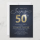 Convites Surpresas modernas, azuis e douradas, 50 anos