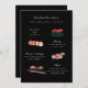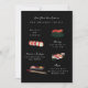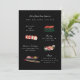 Convite de Janto de noivado com ilustrações sushi originais sobre cor de fundo editável. Foto no verso opcional com área para o site ou código QR; ferramenta zazzle "elementos" usada no lado esquerdo para gerar seu código QR.
