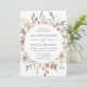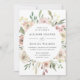 Convites florais elegantes com detalhes de seu casamento cercados por rosas de aquarela e folhas em tons mutados de rosa, marfim, mauve e verde. O verso exibe um fundo de rosa claro sólido. Projetado para coordenar com a nossa coleção de casamento Sutil Blooms.