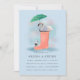 Convite de chá de fraldas desenhado à mão, em cor rosa e azul; as cores de fundo e traseira são editáveis, juntamente com um backer com padrão de ponto. Cisne e cigenete na ilustração da bota de chuva por Becky Nimoy.
