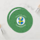 For your Christmas party, this round invitation features an angel wearing the Swedish flag. She flies inside a white, fractal circle of squiggly squares, surrounded by a background fractal of green squiggly squares. Add a name and year to the front to personalize. Or, change the text to whatever you like. Party information is on the back for the details of your event.