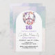 Celebre seu doce 16 no estilo. Este convite apresenta um sinal de paz com elementos florais incorporados e um quadro de arco.