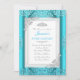 Convites Sweet 16 Blue Teal Silver Lace Damask Tiara