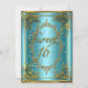 Convites SWEET 16 Doce Teal de Prata Dourada de Dezesseis P