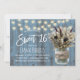 Doce 16 Rustic Winter Floral Jar Dusty Blue Barn Wood Invites de aniversário.