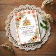 • A charming watercolor design featuring three adorable baby goats stacked on hay bales, framed by sunny sunflowers, daisies, and wheat stalks. The design is bordered by a rustic orange gingham pattern, perfect for a fall, farm, or country-themed baby shower.