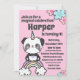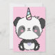 Celebrar uma celebração mágica com este adorável Unicórnio Panda no topo de um arco-íris. O fundo é uma rosa claro adorável, com sotaques florais cor-de-rosa e azuis. Personalize os detalhes da festa.