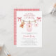 Celebrate the upcoming arrival of a little sweetheart with this charming pink teddy bear baby shower invitation. Featuring a soft gingham back, cozy clothesline details, and an adorable teddy bear baby bodysuit illustration, this design is perfect for welcoming a baby girl in a sweet, classic style.