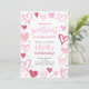 Edite todo o texto para personalizar este doce convite de cheio de coração. Perfeito para fevereiro e Dia de os namorados no primeiro aniversário. Recursos de corações desenhados à mão em tons de rosa, coral, pincel e vermelho.