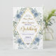 Set a sophisticated tone for your special day with this modern romantic design, blending soft blues, elegant swans, and geometric luxury for a timeless look.