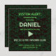 Trigger the ultimate SYSTEM ALERT with this bold hacker-inspired bachelor party invitation. Designed with a dark tech background, neon green circuit patterns, and digital typography, this invite looks straight out of a command line interface.