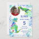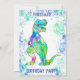Convites T. rex Dinossaur 5 de Aniversário Foto Verde Azul