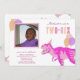 Pronto para ser personalizado por você, basta adicionar sua foto e texto a esses convites de festas de aniversários de dinossauros T-Rex cor-de-rosa e definir o tom para seu pequeno Two-Rex e seu segundo aniversário de dinomite. Para o segundo aniversário deles, dê a seus dois rex uma festa colorida de dinossauros para um aniversário para se lembrar desses convites personalizados de aniversário de fotos de dinossauros de Dois Rex. Projetada para uma garotinha, a paleta colorida de rosa-quente, rosa-pincel, laranja e roxo foi criada como uma cinta extra.