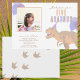 Mude cinco para qualquer idade que precisar! Pronto para ser personalizado por vocês, basta adicionar sua foto e texto a esses convites de festas de aniversários de dinossauros T-Rex e definir o tom para seus cinco assauros e seus 5 de dinomite. Para o seu quinto aniversário, dê aos seus cinco assauros (ou qualquer idade que você personalizar) uma festa colorida de dinossauros para um aniversário que lembre com esses convites personalizados de aniversário de fotos de dinossauros de dois-rex. Criada quer por um menino quer por uma menina, a paleta colorida de castanhos, latas, pêssegos, blues e roxas foi projetada para ser neutra em termos de gênero.