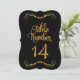 Tabela Número 14 COLLECTION: Em preto com um aspecto metálico de brilho de ouro com um efeito dimensional perfeito para coordenar com uma grande variedade de casamentos, chás de panela, eventos comerciais e de recepção formal. Este é um tipo de letra caligráfica com letras de mão com roldanas, espirais e uma elegante letra de escrita manual. Há uma bela espiral de folha que floresce no topo e no fundo que acentua a forma da borda recortada. Você precisará de um número de suporte ou quadro para usá-los de forma eficaz - que não são fornecidos. Disponível nos números de estoque de 1 a 25, podemos adicionar números se o evento for grande o suficiente para exigi-los. Também podemos fazer combinações de cores personalizadas por uma pequena taxa adicional. COR PALETTE: Olho metálico Dourado e preto-e-claro