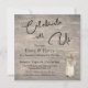 Com uma fonte moderna manuscrita que renderiza um gráfico que representa as palavras "Celebre conosco", este cartão sutil é ideal para celebrar o seu casamento recente. O fundo foi coberto com madeira pálida desgastada. Um buquê desgrenhado de flores silvestres em tons de aquarela desbotados num jarro de Mason acentua a superfície vintage. O seu próprio texto é facilmente adicionado para personalizar este modelo o quanto desejar. Use os campos fornecidos para simplesmente inserir os seus detalhes pessoais e clique para personalizar ainda mais se desejar reposicionar qualquer uma das camadas que foram adicionadas separadamente e deixadas destrancadas para sua conveniência. Por favor, não hesite em entrar em contato comigo para pedidos especiais ou para obter assistência com a personalização.