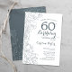 Slate Blue White Floral 60th Convite de aniversário. Design minimalista moderno com desenhos botânicos em destaque e letra de script de tipografia. Simples trendy convida cartão perfeito para uma festa de na moda. Pode ser personalizado para qualquer idade. Impressos convites Zazzle ou modelo de impressão digital instantânea para download.