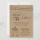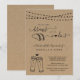 Convite com ilustrações de um duo de tacos e um brinde com cerveja em um fundo kraft rústico maravilhoso.