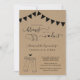 Convite apresenta arte de taco duplo desenhado à mão e brinde de cerveja em um fundo kraft rústico maravilhoso.