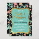 Divertido e colorido, Tacos e convites para tequila. Excelente para qualquer celebração onde o tema seja Fiesta Tacos e Tequila mexicanos! Mudar a redação do aniversário, aposentadoria, graduação, etc. Apresenta uma variedade de suculentos e cactos sobre fundo preto com uma estrutura falsa de folha de ouro com fundo aqua.