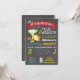 Tacos super legal e modernos e Convite de aniversário de Piscina Margaritas. Faça uma Fiesta mexicana com tacos, tequilla e margaritas com maracas e tipografia divertida contra um quadro negro. Ilustração desenhada à mão por McBooboo.