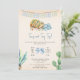 Tacos e minúsculos chás de fraldas de fiesta temática apresentando papel picado, botas de bebê azuis limão, ilustrações de taco e cacto.