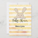 Desfrute deste jogo de chá de fraldas Quem Sabe Ser Melhor da Mamãe? sobre o fundo das listras de aquarela branca, amarela e macia. Coelho bonito, bronzeado e coelho nas costas com modelos criados para você.