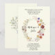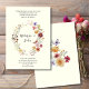 O convite de casamento para o tema da flor selvagem boêmica captura lindamente a essência de uma celebração rústica, mas elegante. Apresentando uma paleta colorida quente de terracota, o design é enfeitado com delicadas ilustrações de flor silvestre que evocam um senso de beleza natural e romance. Perfeito para casais que buscam um toque único e artístico, este convite dá o tom para um dia memorável de casamento, convidando convidados a compartilhar a alegria do amor e do compromisso.