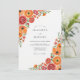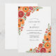 This design features a vibrant collection of watercolor blooms in shades of tangerine, coral, and deep red. Artistic ranunculus and delicate poppies are artfully arranged along the borders, creating a cheerful and warm atmosphere. Lush sage green leaves provide a natural contrast against the clean white backdrop. It is an ideal choice for a sunny outdoor event or a bright seasonal gathering.