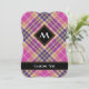 Design de cor rosa, ouro amarelo e azul-tartan. Um padrão perfeito. Texto personalizado e monograma.