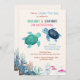 Convite de aniversário conjunto de tartarugas bonitas, com duas tartarugas adoráveis sob o mar com criaturas oceânicas. Perfeito para o aniversário em comum, aniversário de irmãos, aniversário de gêmeos, bem como aniversário de moça ou menino. Itens correspondentes disponíveis no repositório!