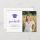 Este convite para a graduação apresenta um tema simples preto-e-branco com um boné roxo e uma torneira de ouro. Adicione uma foto e personalize o texto na frente e atrás para incluir todos os detalhes da sua festa de formatura.
