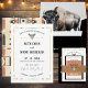 Tatanka Bison Yellowstone Western Ranch Wedding Invitation é um belo cartão desenhado classicamente com uma influência indiana americana. Um crânio de búfalo e setas douradas de turquesa, enrolado com tartaruga sobre fundo branco. A parte de trás da carta tem uma bela design de inspiração indiana americana para um toque adicional. Uma bela maneira de convidar seus convidados para seu casamento ou festa de cocktail inspirado no Yellowstone, pense em "Dutton Ranch-Style"! Combine-se com qualquer um dos nossos Tatanka Bison Yellowstone Western Ranch Collection de envelopes e acessórios para um pacote de convites memorável e muito especial.
