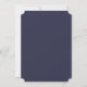 Bela coroa de aquarela de folhagem e flores em taupe, azul naval e verde, convite de casamento. O verso do cartão apresenta cor azul naval sólida.