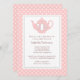 Uma imagem adorável de um bule cor-de-rosa que guardara uma garrafa, um binky, e um chocalho convida convidados a um chá do chá de fraldas em honra da mamã a ser. Em um fundo cor-de-rosa das bolinhas o lunático, contudo o elegante, silhueta de um bule decorado com estes fundamentos do bebê fazem a este convite um prelúdio bonito ao tea party que delicioso você planeou para as mamães afortunadas.