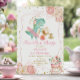 Festa de Tea-Rex Tutu Dinossauro aniversário de 3 anos de Invisitação de Rapariga Elegante Festa de Aniversário de Tea Convidada, Rosa e Branca Flores Douradas, Chamada Luminosa